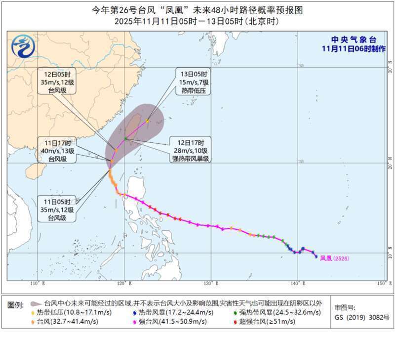 据救急贬责部微信公众号音信,本年第26号台风“凤凰”当今位于南海中东部海面,瞻望将于11月12日下昼到晚上在台湾岛西南部沿海登陆(强热带风暴级或台风级,10~12级)。受其影响,10日至12日,江南东部及华南东部等地有小到中雨,沿海局地大雨或暴雨;东海南部海域、台湾以东瀛面、南海北部和中部海域将有9~10级的大风,部分海域阵风12~13级。