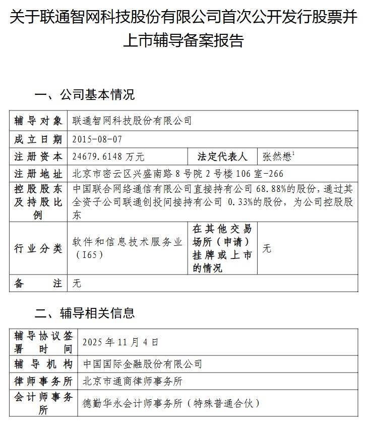 【大河财立方讯息】11月10日,证监会网站涌现,联通智网科技股份有限公司(简称智网科技)已运行上市引导。11月4日炒股配资网上配资配资网,智网科技与中金公司签署了引导公约。