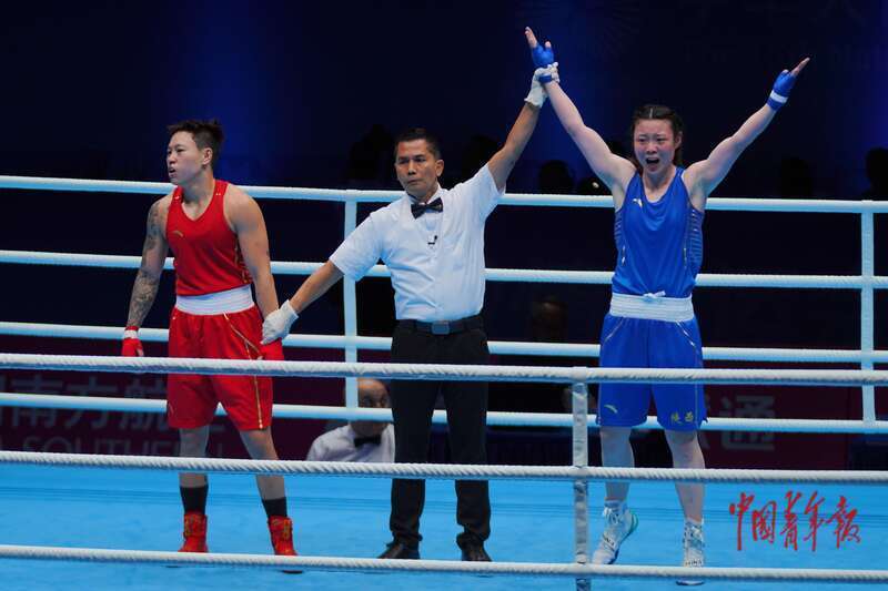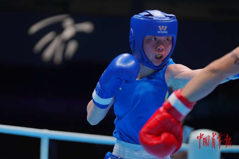11月11日,广东深圳,宝安体育中心体育馆,拳击女子60公斤级决赛,陕西小将陈姿伊出拳迫切。陈姿伊历经三回合血战,以3:2投降贵州名将杨成宇,得回冠军。当日,还进行了须眉80公斤级决赛,四川队选手王小保投降山东体育学院队选手王金祥,夺得金牌。中青报·中青网记者 田嘉硕/摄
